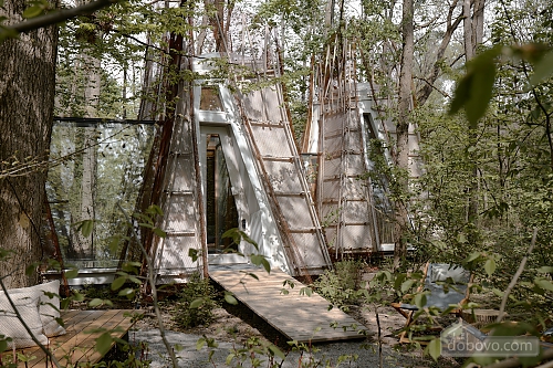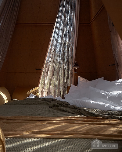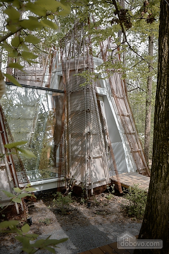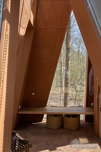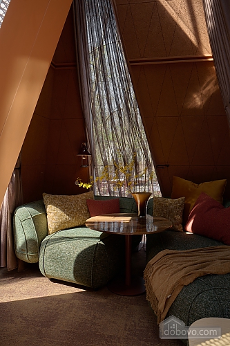 House “Autumn” is designed for a cozy and romantic luxury vacation for two in the forest area of VDNG. Its area is 34 m². There is a living room, a comfortable bedroom, a spacious hallway and a modern shower room. A special feature of the house is the panoramic window lights on the ceiling, which allow you to admire the starry sky. Enjoy your morning coffee or tea on the private terrace, relax in the hammock and use the fast Wi-Fi. Explore the park on electric scooters or bicycles. The vibrant cultural life of VDNG with concerts, festivals, fairs, exhibitions and the best restaurants is right next door.Main Facilities