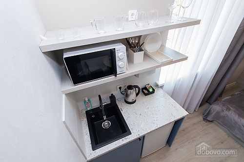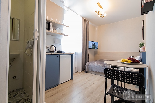 The studio has everything you need for a comfortable stay: - Free Wi-Fi and TV - Fresh bedding, towels, slippers, hairdryer, and iron - Kitchen with necessary utensils and appliances, as well as a washing machine - Air conditioning - Shower with constant hot water What is nearby? - 1.8 km from the Olimpiiska metro station - Institute of Cardiovascular Surgery, 450 m away - F.G. Yanovsky National Institute of Phthisiology and Pulmonology of the National Academy of Medical Sciences of Ukraine, 450 m away Amenities: - Remote check-in and check-out via electronic lock - Documents for business trips Book your studio now and enjoy a comfortable stay in Kyiv!Main Facilities