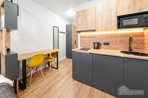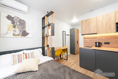 We invite you to cozy apartments at the address: Baltiysky Lane, 3A, in the modern residential complex “Navigator.” The location is 4 km from the metro stations “Dorogozhychi” and “Obolon,” and 8 km from the city center. The studio has everything you need for a comfortable stay: - Free Wi-Fi and TV - Fresh bedding, towels, slippers, hairdryer, and iron - Kitchen with necessary utensils and appliances, as well as a washing machine - Air conditioning - Shower with constant hot water What is nearby? - Kurenivsky Market — 700 m - 2 km from Karavan shopping center Amenities: - Remote check-in and check-out via electronic lock - Documents for business trips. Book a studio now and enjoy a comfortable stay in Kyiv!Main Facilities