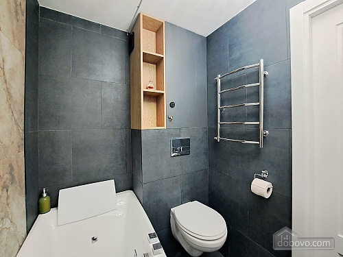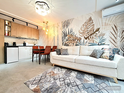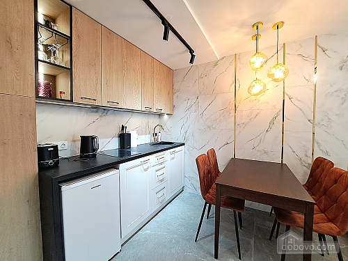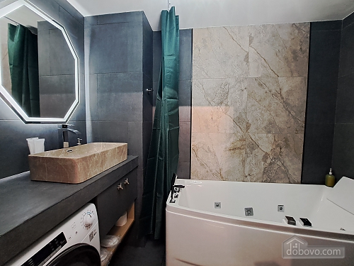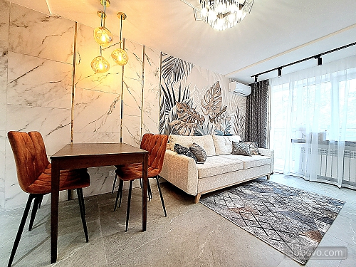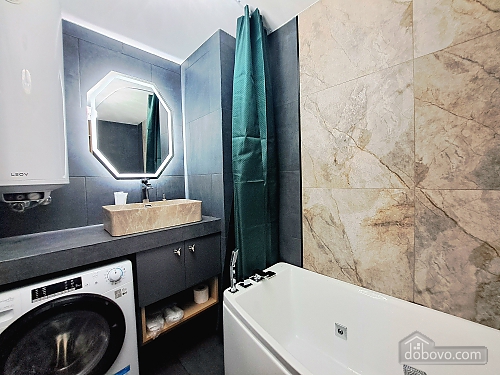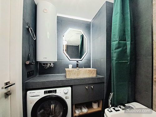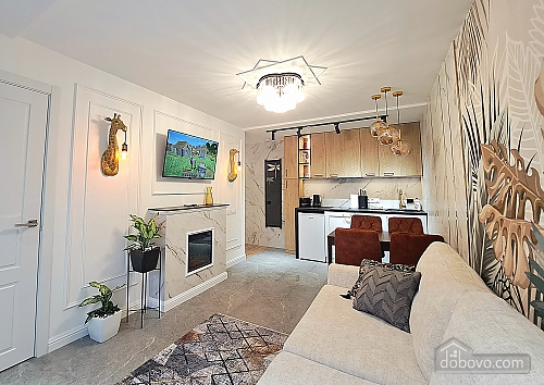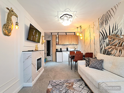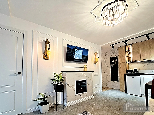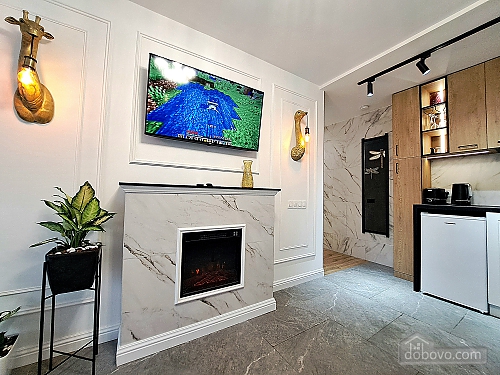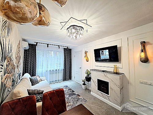 A beautiful apartment with a new designer renovation in the very center of Kharkiv. High-quality materials and comfortable furniture create a magical cozy atmosphere. Guests have access to a full set of basic appliances, as well as two Smart TVs, a Wi-Fi-controlled washer-dryer, an electric fireplace, a toaster, and much more. The bathroom has a jacuzzi. The door is equipped with a smart lock with a high degree of protection. A Wi-Fi package of up to 500 Mbps allows you to watch videos without lag. A nice house with a closed, secure yard where you can leave your car. The gate opens with a remote control, and there is a gate with code access for pedestrians. The enlarged balcony with garden furniture is a great place to enjoy your morning coffee and the wonderful view of the park and city center.Main Facilities