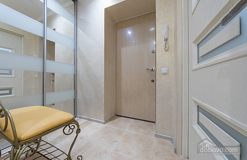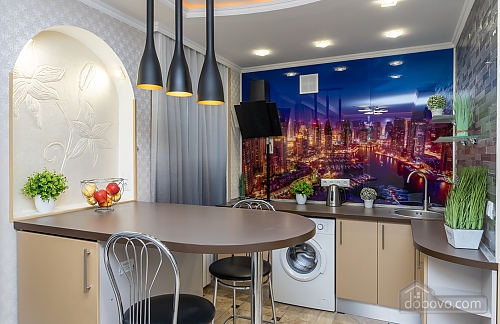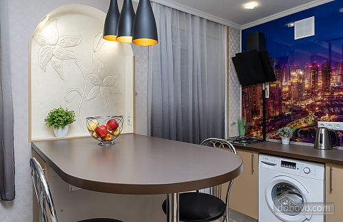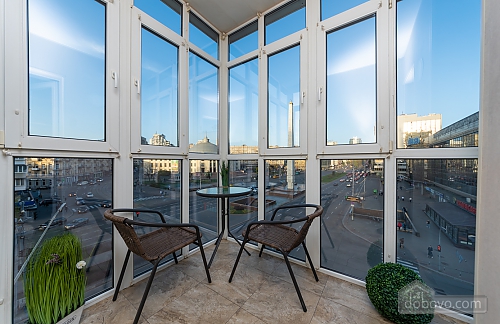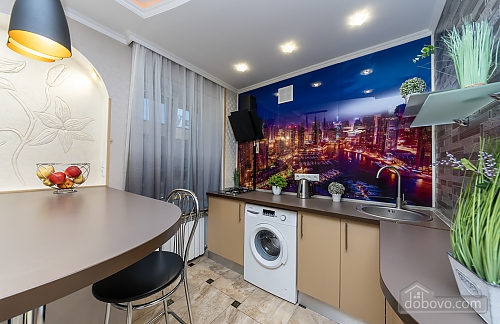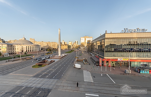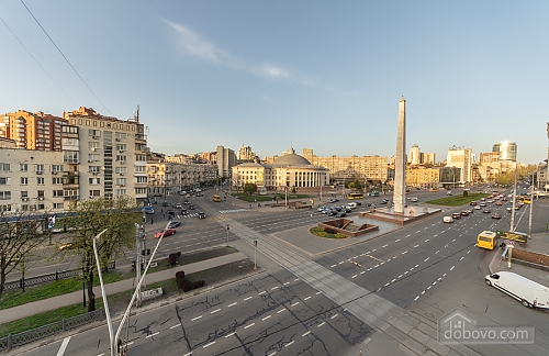 The apartment is located near the National Circus of Ukraine, Ukraine shopping center and Vokzalna metro station. Located on the 5th floor of a building with an elevator. Has a balcony with a view of the circus. The total area of the apartment is 45 square meters.