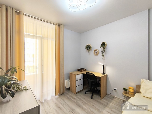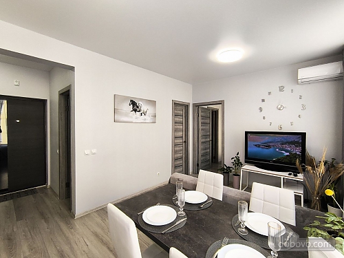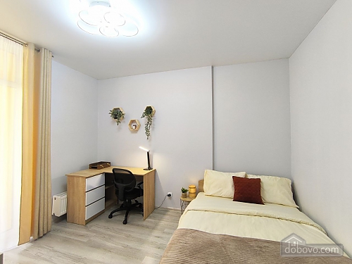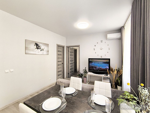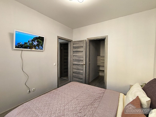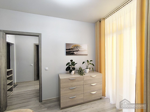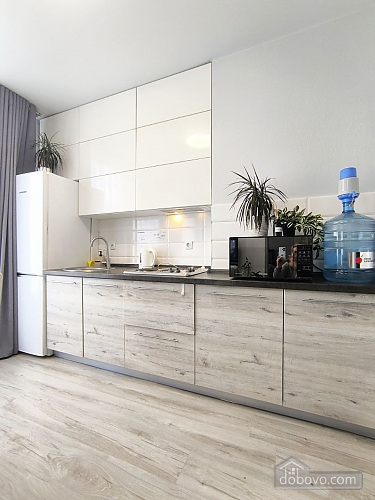 Comfort Town Residential Complex is a residential complex of comfort class. The territory of the complex is landscaped, there are many parks, cafes, restaurants and places for recreation. Kitchen-living room. The studio kitchen has a TV, Wi-Fi, sofa, dining table, air conditioning, refrigerator, microwave, dishwasher, kettle, necessary utensils, pots and pans. Bedroom 1: Large double bed (160×200 cm), TV, closet. Bedroom 2. Large double bed (160×200 cm), equipped workstation, chest of drawers, balcony. Bathroom. Shower cabin, washing machine, boiler. Free parking on the territory of the complex. There are also many cafes and restaurants on the territory. There is a gym with a swimming pool and sauna. For outdoor sports there are treadmills, outdoor fitness equipment, horizontal bars, benches and convenient parking areas.Main Facilities