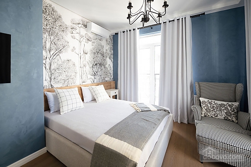 Sofa - Wardrobe - Chair-bed for 1 person - King-size bed - Mirror - Flat Screen TV Set - Air Conditioner