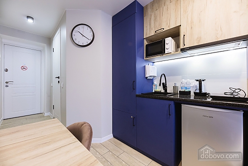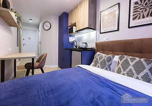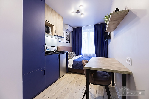 We invite you to our cozy apartment at 12 Air Force Avenue. The studio has everything you need for a comfortable stay: - Free Wi-Fi and TV - Fresh bedding, towels, slippers, hairdryer, and iron - Kitchen with necessary utensils and appliances, as well as a washing machine - Air conditioning - Shower with constant hot water What is nearby? - 1.3 km from the Ultramarine shopping center - 3.7 km to the Kiev Zoo - 3.3 km to the KPI Park Amenities: - Remote check-in and check-out via electronic lock - Documents for business trips Book your studio now and enjoy a comfortable stay in Kyiv!