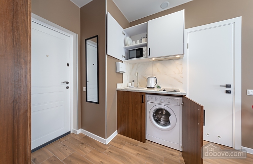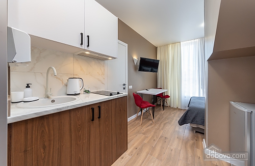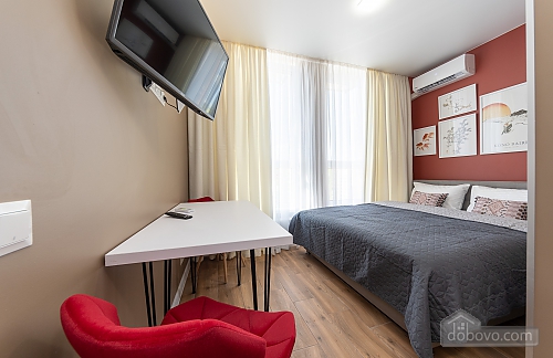 We invite you to cozy apartments at: Beresteyskyi Avenue, 65V, in the modern residential complex Nyvky Park. The studio has everything you need for a comfortable stay: - Free Wi-Fi and TV - Fresh bedding, towels, slippers, hairdryer and iron - Kitchen with necessary dishes and appliances, as well as a washing machine - Air conditioning - Shower with constant hot water What is nearby? - 950 m from Nyvky Park - 50 m from McDonald’s Conveniences: - Remote check-in and check-out via electronic lock - Documents for business trips Book the studio now and enjoy a comfortable stay in Kyiv!