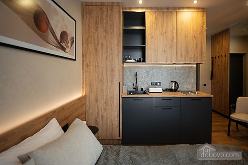 We invite you to cozy apartments at: 1D Berdniyka Olesya St., in the modern residential complex Nyvky Park. The studio has everything you need for a comfortable stay: - Free Wi-Fi and TV - Fresh bedding, towels, slippers, hairdryer and iron - Kitchen with necessary dishes and appliances, as well as a washing machine - Air conditioning - Shower with constant hot water What is nearby? - 950 m from Nyvky Park - 50 m from McDonald’s Conveniences: - Remote check-in and check-out via electronic lock - Documents for business trips Book the studio now and enjoy a comfortable stay in Kyiv!