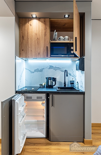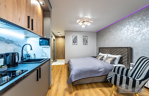 Location — 5 km from the metro stations "Obolon", "Pochaina", "Minska", and 9 km from the city center. The studio has everything you need for a comfortable stay: - Free Wi-Fi and TV - Fresh bedding, towels, slippers, hairdryer and iron - Kitchen with necessary dishes and appliances, as well as a washing machine - Air conditioning - Shower with constant hot water What is nearby? - Ornament Shopping Center is only 1.3 km away - 5 km from the metro stations Pochaina, Minska and Obolon Conveniences: - Remote check-in and check-out via electronic lock - Documents for business tripsMain Facilities