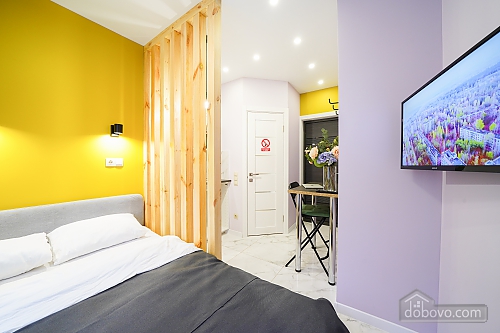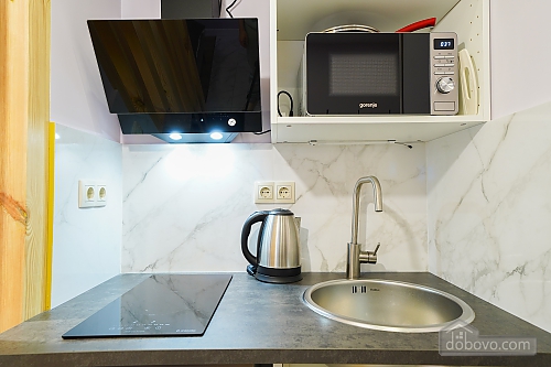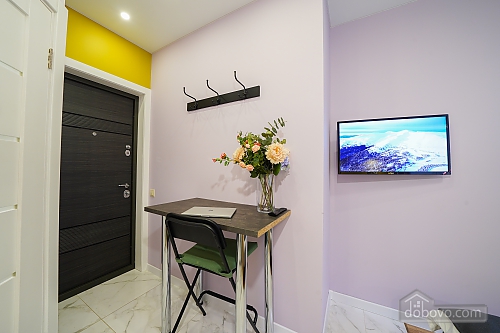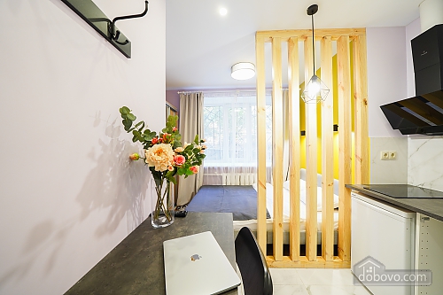 We invite you to stay in our cozy apartment located at 12 Air Force Avenue. The location is only 1.2 km from the Central Railway Station and 4 km from the city center. The studio has everything you need for a comfortable stay: - Free Wi-Fi and TV - Fresh bedding, towels, slippers, bathrobe, hairdryer, and iron - Kitchen with necessary utensils and appliances, as well as a washing machine - Air conditioning - Shower with constant hot water What is nearby? - 1.3 km from the Ultramarine shopping center - 3.7 km to the Kiev Zoo - 3.3 km to KPI Park Amenities: - Remote check-in and check-out via electronic lock - Documents for business trips. Book your studio now and enjoy a comfortable stay in Kyiv!Main Facilities