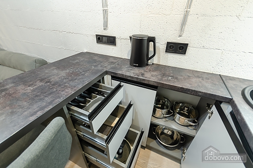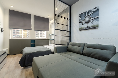 The apartment is located on the 26th floor with a panoramic view of the city of Kyiv. The total area of the apartment is 25 m², includes: Sleeping area: 1600 x 2000 mm bed, sofa, electric fireplace, desk, air conditioning, Smart TV, clothes hanger; Kitchen area: refrigerator, microwave oven, electric kettle, electric stove, pots, pans, all necessary utensils, cups, glasses, dining area; Bathroom: Shower, toiletries, hairdryer, towels; Smart lock: Entrance by code, allowing access at any time without the presence of the owners; Backup power: the apartment is equipped with an inverter and a battery system that ensures the availability of electricity even during outages. Enjoy uninterrupted comfort and convenience! Generator: water and elevators are available even in case of power outages (except for the period from 00:00 to 06:00); Air conditioning: provides a comfortable microclimate at any time of the year; Security: smart lock and video surveillance in public areas of the residential complex; Home appliances: washing machine, refrigerator, microwave, hob, oven, Smart TV; Additional information: Location: the apartment is located in the central part of the city, close to major attractions, shops, restaurants and cafes. The central railway station is 2.2 km away, Independence Square is 4 km away. The nearest metro station is Polytechnic Institute - 1.6 km, Vokzalnaya metro station - 2.2 km. Kyiv Zoo - 2.3 km, Sofia Square - 3.5 km. Shops, restaurants, cafes and shopping centers are nearby. McDonald's is located on the territory of the residential complex. Transportation: convenient access to public transport and parking near the house. We have parking available for an additional fee. Please check availability. Bartscher shoe shine machines are installed in the main halls for your convenience in any weather. Wi-Fi: available throughout the apartment.Main Facilities