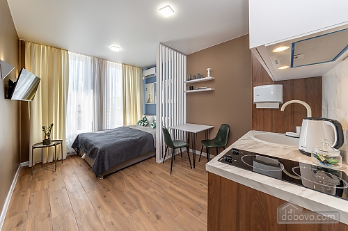 We invite you to cozy apartments at: Beresteyskyi Avenue, 65V, in the modern residential complex Nyvky Park. The studio has everything you need for a comfortable stay: - Free Wi-Fi and TV - Fresh bedding, towels, slippers, hairdryer and iron - Kitchen with necessary dishes and appliances, as well as a washing machine - Air conditioning - Shower with constant hot water What is nearby? - 950 m from Nyvky Park - 50 m from McDonald’s Conveniences: - Remote check-in and check-out via electronic lock - Documents for business trips Book the studio now and enjoy a comfortable stay in Kyiv!Main Facilities