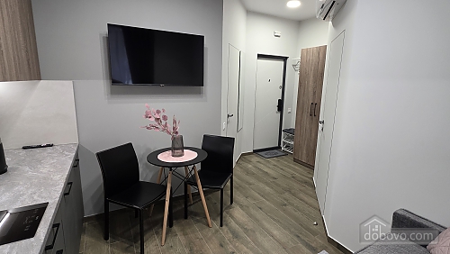 Lilac 2 apartment is a stylish and comfortable apartment, ideal for up to 3 people. The interior is decorated in pleasant powder gray colors, which creates an atmosphere of comfort and tranquility. Layout: Bedroom: comfortable double bed, wardrobe, bedside tables. Separate kitchen: fully equipped for self-catering, including a dining area and a folding chair that provides additional sleeping space. Amenities: Kitchen: refrigerator, electric stove, microwave, electric kettle, full set of dishes and kitchen utensils. Home appliances: washing machine, dishwasher, hairdryer, iron and ironing board. Media and internet: flat-screen TV with cable channels, free Wi-Fi. Sanitary facilities: bathroom with shower, towels, toiletries. Additional benefits: Contactless check-in: the apartments are equipped with modern electronic locks for the convenience of guests. Location: central part of the city, convenient access to the main attractions of Lviv. Terms of stay: Number of guests: up to 3 people. No pets: pets are not allowed. Smoking: not allowed on the territory of the apartment.Main Facilities