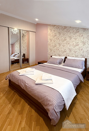 Large duplex apartment with new designer repair. The apartment has 3 isolated rooms and a living room, a large kitchen, as well as 2 bathrooms. One of them has a large bathtub. In the living room there is a huge plasma with smart TV. The apartment has dishes, bedding, towels, as well as free wi-fi. Accommodation with pets is possible, but on request! The apartment has 8-9 beds. Two large double beds, folding double sofa, and a folding corner in the living room, which can sleep even 3 people.Main Facilities