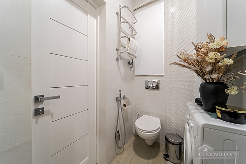 For 3 people. 1st floor, quiet courtyard. Bedroom: large comfortable bed, smart TV, sofa bed, independent heating, underfloor heating, wardrobe. Kitchen: dining area, refrigerator, microwave, induction hob, kettle, all necessary utensils. Bathroom: shower, washing machine, slippers, towels and cosmetics, hair dryer, iron, ironing board.Main Facilities