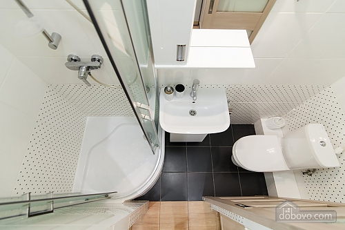 The apartment has everything you need for a comfortable stay: Modern renovation, armored doors, metal-plastic windows. Modern furniture, double bed. There is a shower cabin. Cold and hot water is available around the clock. Household appliances: washing machine, electric stove, refrigerator, electric kettle, microwave, iron, ironing board, hairdryer. Individual heating. TV, cable TV, internet (Wi-Fi). Bed linen, towels, necessary utensils, hygiene products. The apartment is located on the 3rd floor of a 3-storey building.Main Facilities