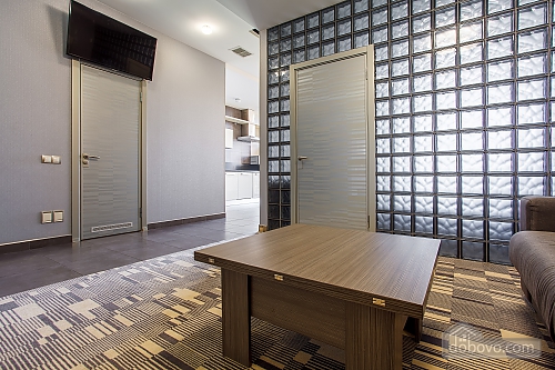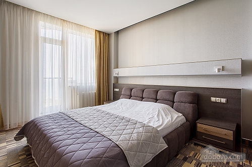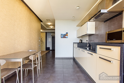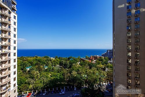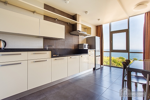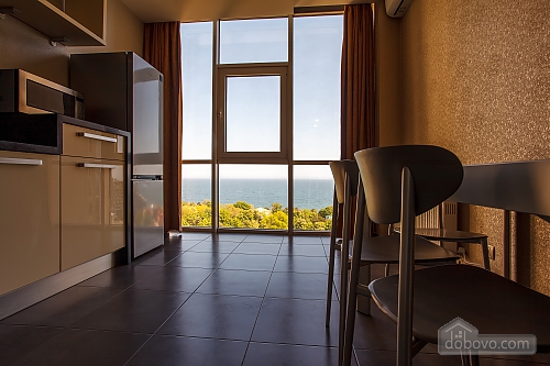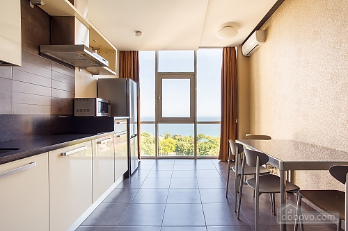 The apartment is located on the 12th floor of the 18-story 2 Pearl complex. Check-in is available at any time, 24 hours a day! Don't worry if you need to arrive at night. The price includes: - Clean bed linen and towels. - All dishes and kitchen utensils. - Disposable slippers. - Disposable hotel-standard soap. - High-speed Wi-Fi internet. Balcony with sea view, in the warm season you can have breakfast with a beautiful view :) There is a coffee machine in the apartment, fine grain, and we provide good coffee for it. If you like coffee with milk, don't forget to buy milk. You can park your car near the house if there are free spaces. There are many free parking spaces along the road, and there are usually free spaces available. However, there is no private or paid parking space. The advantages of this location are: - There is a Silpo supermarket and Plaza shopping center 200 meters from the house. - Silpo has very good deli food and affordable prices for ready-made meals. - There is a 24-hour Kopeika supermarket in the building. - Only 250 meters to the central alley of Arcadia. - Secure, guarded, and closed area with video surveillance. - Proximity to the sea - 250 meters. - Arcadia beaches are 250 meters away. - Developed infrastructure. Kadorr City Mall and Plaza shopping centers are a 10-minute walk away. The apartment has 2 air conditioners and 2 49-inch Smart TVs. You can use your own accounts on any program to view content; YouTube does not require an account. The apartment is decorated in a modern style. Although bright colors are used in the interior, they are not striking due to the muted shades. The apartment has a balcony with a table and chairs and a direct view of the sea. The living room and kitchen also have a sea view. Layout: 1 bedroom - bed, 49-inch TV. 2 living room - 1 sofa bed. Kitchen - table and 4 chairs. Balcony - 2 chairs and a coffee table.