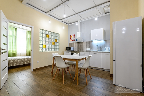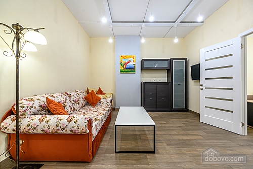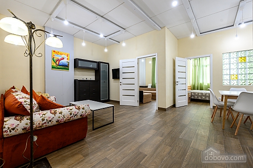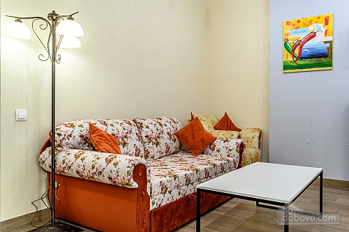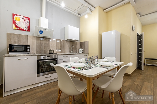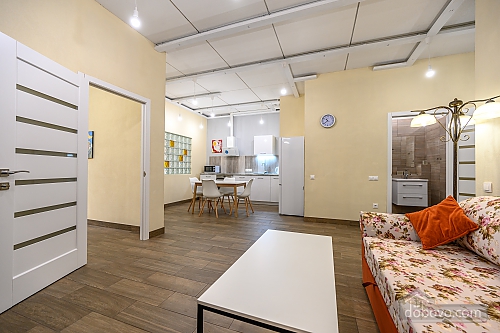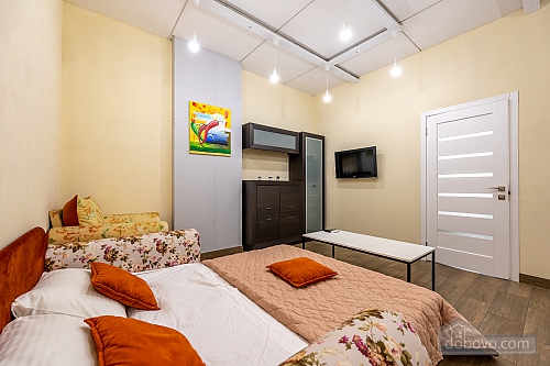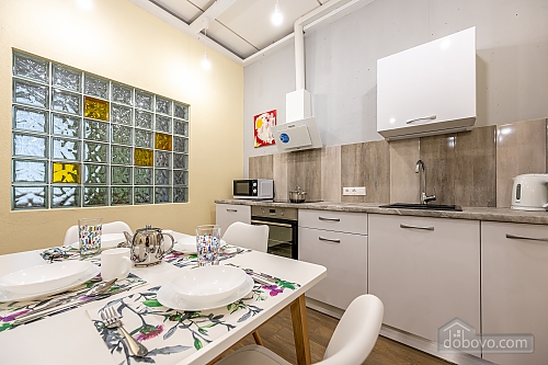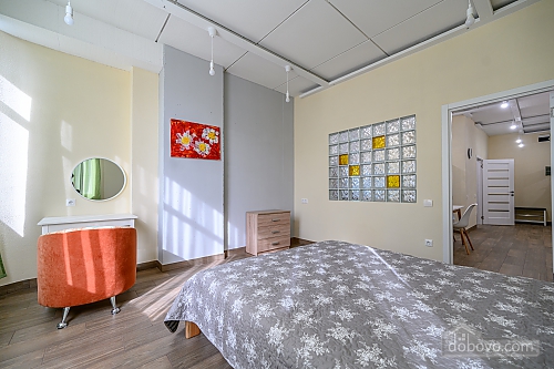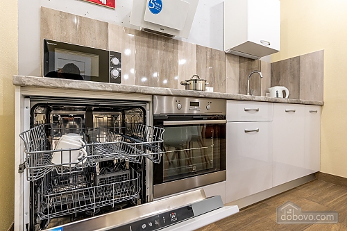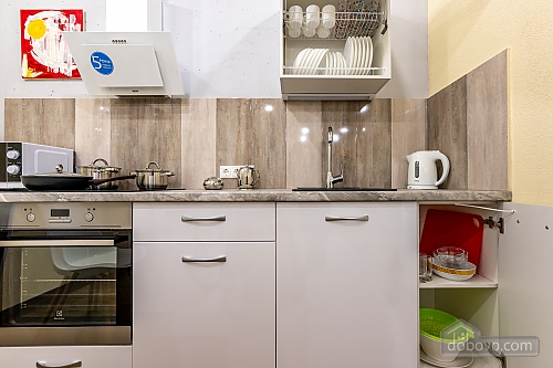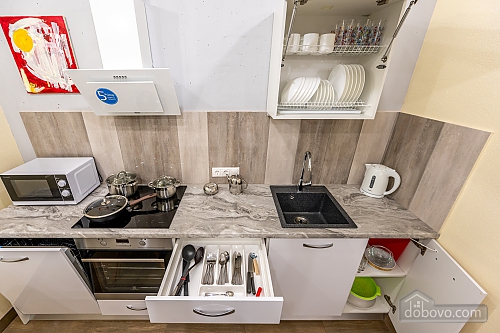 Апартаменты Gagarin Plaza 63 расположены в Аркадии (Приморский район Одессы), на 4 этаже многоэтажного здания, на закрытой охраняемой территории (с детской площадкой) рядом с морем, комплексом развлечений Аркадия - сити, торговым центром Гагарин Плаза и двумя паркингами. Просторные апартаменты с кондиционерами состоят из: - двух отдельных спален (в одной - двуспальная кровать, в другой - две односпальные, можно сдвигать) с постельным бельем; - гостиной с раскладывающимся диваном; - кухни-столовой с бытовой техникой, посудой и всем необходимым; - ванной комнаты с полотенцами и феном. В числе удобств - бесплатный быстрый Wi-Fi, два телевизора с плоским экраном, стиральная машина, посудомоечная машина, утюг, гардероб, вода круглосуточно. В здании имеется продуктовый магазин, в торговом центре Гагарин Плаза - супермаркет Сильпо, ресторан, кафе, аптека, химчистка, кинотеатр, банкоматы и т.д. В здании три лифта. Вход на территорию и в здание - с чипом (гостям предоставляется 2 чипа). Парковка: - на улице; - в закрытом паркинге торгового центра Гагарин Плаза (за плату); - в открытом паркинге комплекса развлечений Аркадия - сити (за плату). Комплекс развлечений Аркадия - сити с многочисленными ресторанами, кафе, аттракционами - в 4 минутах ходьбы. Остановки общественного транспорта - в 4 минутах ходьбы. Морские пляжи, клубы, аквапарк, спортплощадки в 8 минутах ходьбы. Одесский театр Оперы и Балета - в 6 км. Памятник Де Ришелье - в 6 км. До Дерибасовской 8 км (15-20 минут на автомобиле или 30-40 минут на общественном транспорте). Аэропорт - в 7 км. Одесский Морвокзал - в 8 км. Мы говорим на вашем языке!Основные атрибуты