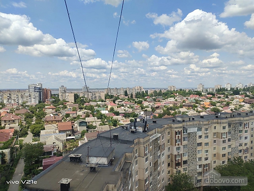 A spacious, bright apartment with stunning views of Kuyalnik and the city at night—with unforgettable sunsets and sunrises. Located a 10-minute walk from the sea (Kryzhanivka Beach). The apartment is equipped with all necessary furniture and appliances. Large loggia with a bed and air conditioning, living room with a comfortable sofa, smart TV, work and/or dressing table, wardrobe. Kitchen with another loggia, microwave oven, and multicooker, all necessary utensils are available. Excellent infrastructure: playgrounds and sports grounds, tennis tables, gazebos, many shops, pharmacies, markets, and shopping centers. Parking is available in the courtyard. The city center is 15 minutes away by car. There is a public transport stop near the house.Main Facilities