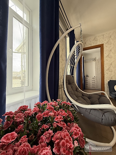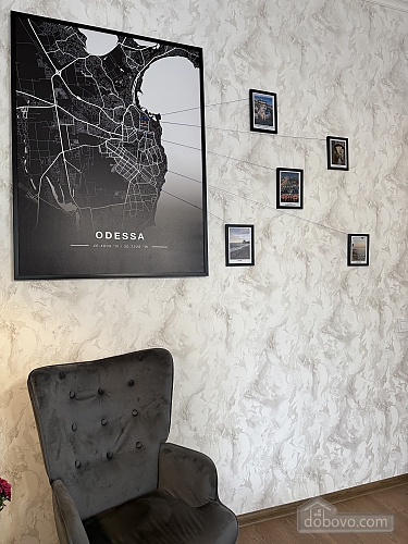A cozy apartment in the heart of Odesa awaits its guests at 30 Yevreiska Street! The apartment is located on the 3rd floor and is ideal for a comfortable stay and a pleasant vacation. The apartment features a stylish and bright living room equipped with a comfortable sofa, a designer rocking chair, and a large TV. The cozy atmosphere is complemented by decorative interior elements and original lighting. The bedroom is decorated in modern, calm colors, with a comfortable double bed, bedside tables, and a spacious wardrobe for storing things. The kitchen is equipped with all the necessary appliances: a refrigerator, a hob, an electric kettle, a coffee machine, a washing machine, and a comfortable dining area by the window. The kitchen is also fully equipped with all the necessary utensils for comfortable cooking. The modern bathroom is designed in a minimalist style and equipped with a shower, stylish sink, towel dryer, and illuminated mirror. A special feature of the apartment is a cozy balcony with a seating area where you can enjoy your morning coffee or evening gatherings overlooking the quiet Odessa courtyard. A separate parking space is provided for guests. These apartments are perfect for travelers who appreciate comfort, stylish design, and a central location that allows them to reach the main attractions and popular establishments of Odessa in a few minutes. Nearby are the famous Deribasovskaya Street, the Opera House, Primorsky Boulevard, Potemkin Stairs, and the City Garden. Within walking distance are many cafes, restaurants, and shops. Welcome to Odesa! Enjoy your stay in comfort and coziness!Main Facilities