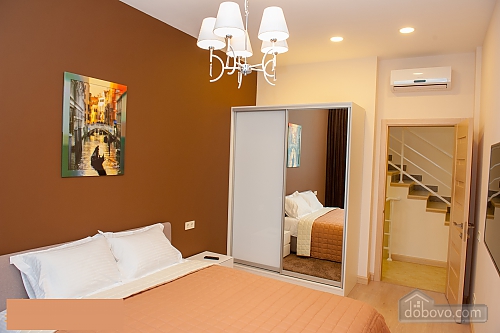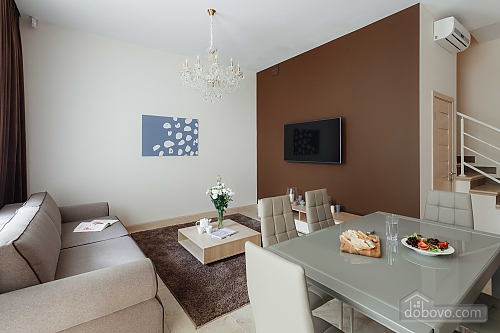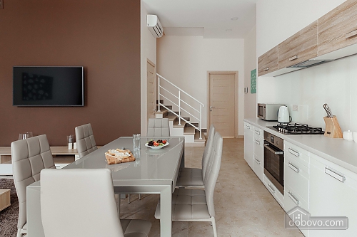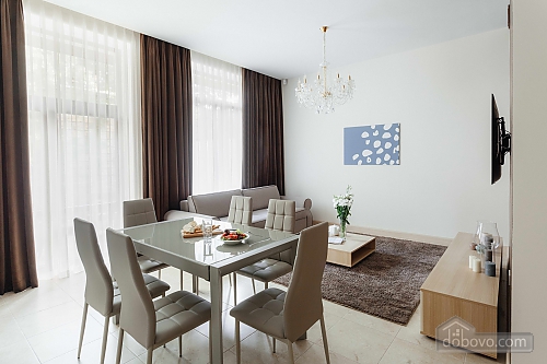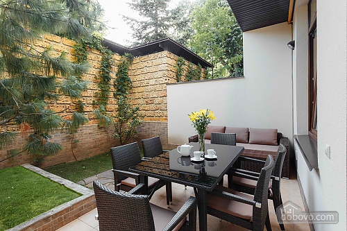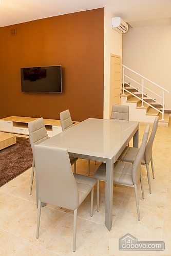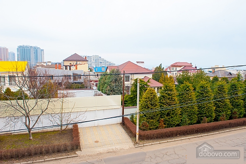 The newly built three-storey standard class cottage, which is designed for comfortable recreation and residence, has: • 3 comfortable bedrooms; • all furniture is available; • 3 individual bathrooms with shower; • kitchen-studio with modern equipment: 2 zones - dining and lounge with LED TV; • summer terrace with barbecue and patio furniture; • design decorated in high-tech style; • third floor overlooking the sea. Everything for your comfort in Arkadia Villa: • Wi-Fi; • air conditioners; • backup power supply; • LED TV; • outdoor security/surveillance; • 1 garage and parking space with the exterior of the building. Renting an apartment, consider the convenience of the location. Arkadia Villa guarantees: • short walking distance to the sea; • aqua park, the best nightclubs of Odessa, cozy restaurants; • shopping centers and stores; • center - 15 minutes by car. We provide discounts for a number of days depending on the length of stay. You can also consider premium cottages that we have.