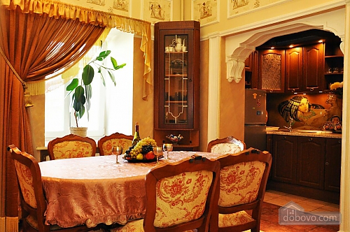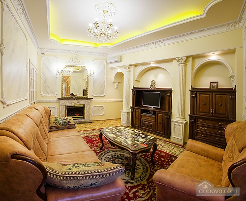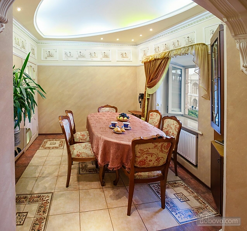Luxury apartment in the heart of Odessa. The apartment is quiet and cozy due to the fact that the wall thickness of 1.5 m, plastic windows with triple glass blocks are not open to the roadway, and the park area overlooking the fountain and the Opera House, close to the house is a fitness center " , Formula, "square" Palais Royal ", the famous beer" Gambrinus "on the street. Deribasovskoy, a marina, Potemkin Stairs, many different museums, entertainment venues and places where you can eat a meal and not expensive. From our windows have a unique opportunity to watch the wedding of the Odessa pairs, as well as concerts and festivals that are held several times on priteatralnoy area in our city. House Rules: Check-In: 14:00 Departure time: 12:00 Prepayment: Yes, agreed on separately. Security deposit: Yes, agreed on separately. Where can I get the keys to the apartment: In the apartment. The presence of the guest of identity papers: Required. Take your passport. Age limit: 25 years. Cleaning is carried out: Before settlement. Rent Celebrating of birthday, New Year or any other event: Possible after personal communication. Smoking in apartments: Permitted in strictly designated area. Staying with the animals: Prohibited. Minimum rental period of the apartment is: 2 days. The apartment accommodates up to 6 people at a time. Transfer service: Available. Extra guest: $ 10 / night after 3 guestsMain Facilities