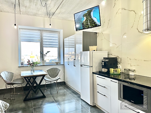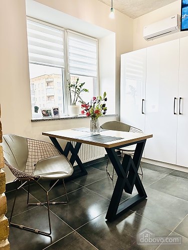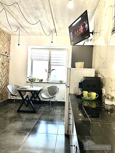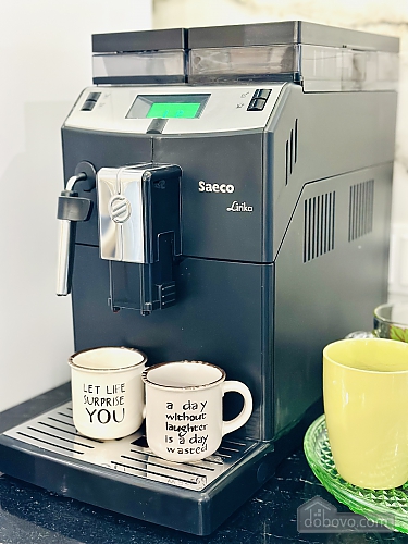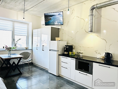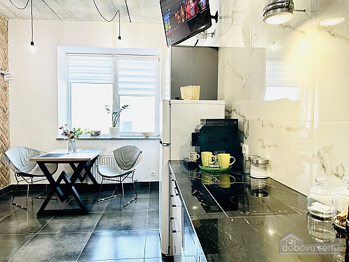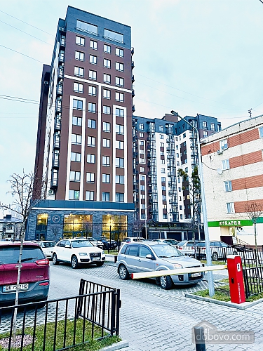 We invite you to visit the designer apartments in the newly built Teatralnyi residential complex. The house is located next to the Drama Theater and the Manhattan shopping center - in the very center of Rivne. There are coffee shops, restaurants, cafes, McDonald's, a supermarket, a pharmacy, a bank, a market and other infrastructure facilities nearby. The apartments are designed for guests who appreciate comfort, quality and high level of service. For your convenience, there is a coffee machine in the apartment - you can always enjoy a cup of aromatic coffee or tea. At your service: fresh snow-white bedding, towels, a comfortable orthopedic mattress for a comfortable sleep, bath accessories, Wi-Fi and Smart TV. The kitchen is fully equipped with everything you need, including dishes. Infrastructure: convenient access, close to public transport. There is a guarded parking lot on the territory of the residential complex and near the house. We are waiting for you in our apartments!Main Facilities