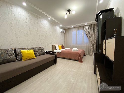 Месторасположение: апартаменты находятся по адресу ул. Зои Гайдай 9А, на 1-ом этаже 9-этажного кирпичного дома, в трех минутах от метро Героев Днепра и метро Минская. В 5-ти минутах ходьбы находится круглосуточный супермаркет «Велика Кишеня», охраняемая стоянка, рынок Героев Днепра, рынок Минский. Комфорт и удобства: апартаменты класса люкс, имеют две раздельные комнаты, что позволяет разместить до 4-х человек. Также, по желанию, возможна установка дополнительного спального места. В квартире есть вся бытовая техника: бойлер, фен, кондиционер, телевизоры (на кухне и в комнате), Wi-Fi, стиральная машина, духовой шкаф, варочная поверхность, микроволновая печь, электрочайник. Чистое постельное белье и полотенца, а также необходимый набор посуды входят в стоимость аренды.Основные атрибуты