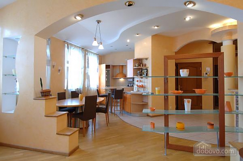Для проживания гостям предлагаются апартаменты люкс с четырехместной джакузи. Квартира рассчитана на 8 гостей. Апартаменты расположены на 4 этаже 5-этажного дома. Имеется необходимая техника и мебель. Рядом находятся станции метро, парк имени Тараса Шевченко, рестораны и бары.Основные атрибуты