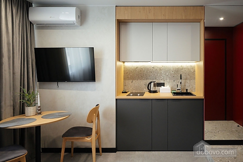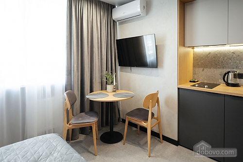 Приглашаем вас в уютные апартаменты по адресу ул. Максимовича, 26Б, в современном жилом комплексе "Новая Англия". В студии есть все необходимое для комфортного пребывания: - Бесплатные Wi-Fi и TV - Свежая постель, полотенца, тапочки, халат, фен и утюг - кухня с необходимой посудой и техникой, а также стиральная машина - кондиционер - душ с постоянно горячей водой Что находится рядом? – 1,4 км от Национального института рака - для прогулок Парк Голосеевский всего в 3 км - 2 км от ВДНХ Удобства: - дистанционное заселение и выселение через электронный замок - Командировочные документы Забронируйте студию сейчас и наслаждайтесь комфортабельным пребыванием в Киеве!Основные атрибуты