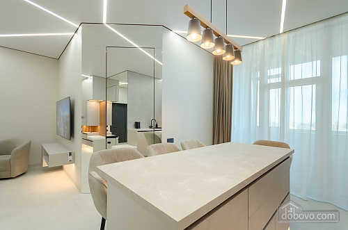 Квартира находится в 5 минутах ходьбы от пляжа «Золотой Берег» - одного из самых прекрасных в городе. Классический ремонт выполнен преимущественно в светлых оттенках. В доме есть охрана, видеонаблюдение, большой паркинг, который также используется как бомбоубежище. Поблизости - два больших супермаркета, аптека и кафе. В квартире есть все необходимое для комфортного проживания. В наличии такая бытовая техника: телевизор, холодильник, микроволновая печь, чайник, кондиционер, стиральная машина. Гостям предоставляются посуда, чистое постельное белье, банные полотенца и туалетные принадлежности. Есть интернет (Wi-Fi). Возможен как наличный, так и безналичный расчет.Основные атрибуты